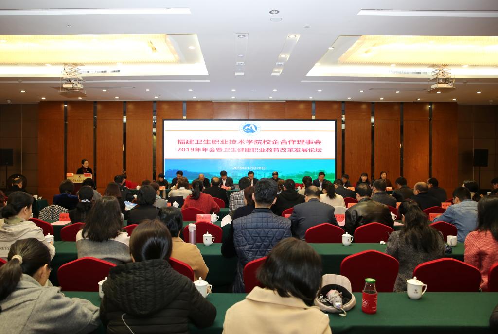 12月20日上午,我校在閩江飯店召開校企合作理事會2019年年會暨衛(wèi)生健康職業(yè)教育改革發(fā)展論壇。福建省衛(wèi)生健康委員會規(guī)劃發(fā)展與信息化處處長洪濤、南平市扶貧開發(fā)協(xié)會會長柳貴清、校黨委書記曾武祈、校長蘇友新,南平、寧德市教育局、衛(wèi)健委的有關(guān)負責(zé)人,校企合作理事會單位、省外兄弟合作院校的領(lǐng)導(dǎo)以及我校黨政領(lǐng)導(dǎo)班子其他成員、骨干教師代表共計200多人參加了會議。副校長鄭翠紅主持大會。