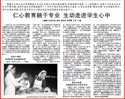 11月13日,我校護(hù)理系陳佳美同學(xué)在廈門北站候車時,聽到廣播站在呼叫醫(yī)務(wù)人員,立即主動找到廣播站,對一名四肢乏力、言語不清、大量出汗的男子及時實(shí)施救護(hù),經(jīng)急救車送往醫(yī)院救治轉(zhuǎn)危為安。11月24日該男子通過到廈門北站了解到陳佳美是我校一名正在廈門大學(xué)附屬第一醫(yī)院實(shí)習(xí)的學(xué)生,希望能夠聯(lián)系上醫(yī)院表示感謝。11月26日,廈門大學(xué)附屬第一醫(yī)院護(hù)理部向我校發(fā)來一封表揚(yáng)信。