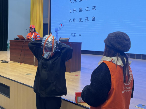 本次講座,從校園火災案情分析、危害性、常見消防安全隱患、火災自護自救及逃生四個方面展開,結合當下校園消防安全事故特點,著重開展學生宿舍火災、電動車火災的案例分析,通過一個個真實的案例,敲響學生心里消防安全的警鐘。講座間隙,陳秋平講師與到場學生開展問答互動,現(xiàn)場氣氛活躍;同時現(xiàn)場演示消防逃生用具的使用方法,讓學生真實體會掌握消防自救逃生技能的重要性。