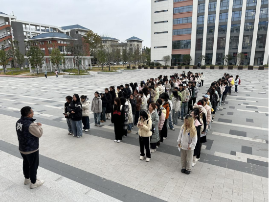 16:00時演練開始,隨著哨聲響起,參加演練的師生按照方案規(guī)定程序迅速、有序的撤離,歷時1分07秒,達(dá)到演練預(yù)期效果。演練結(jié)束后,安全工作處林捷老師就此次疏散演練活動做了簡明扼要的總結(jié)。