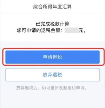 (六)申報(bào)成功后,如果需要退稅,則跳轉(zhuǎn)到退稅頁(yè)面,點(diǎn)擊“申請(qǐng)退稅”。
