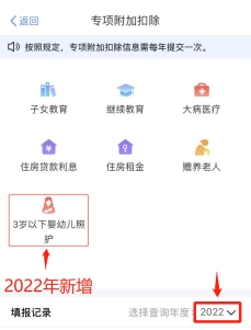 注意:2022年專項(xiàng)附加扣除新增“3歲以下嬰幼兒照護(hù)”,請(qǐng)符合條件的納稅人按要求填寫。