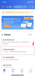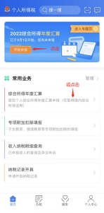 (一)打開并登陸“個(gè)人所得稅”APP,點(diǎn)擊“2022綜合所得年度匯算”或“常用業(yè)務(wù)”下的“綜合所得年度匯算”。