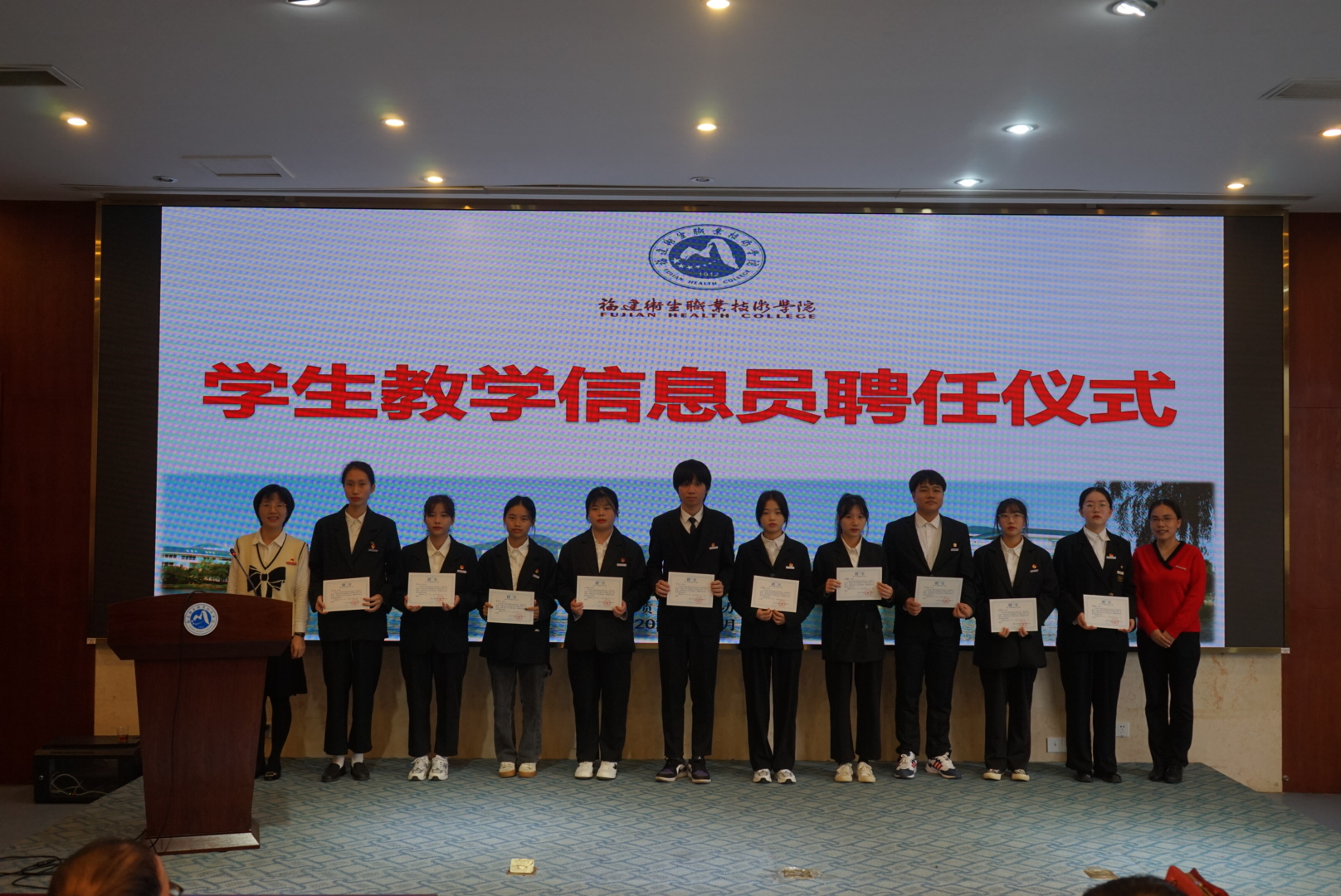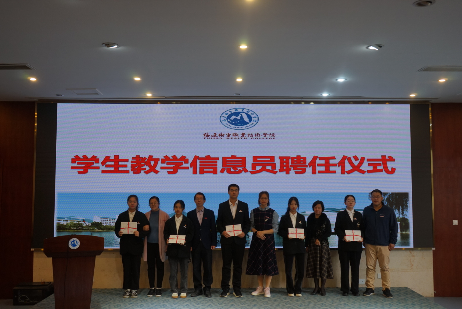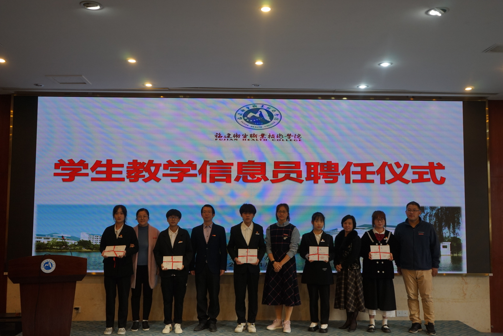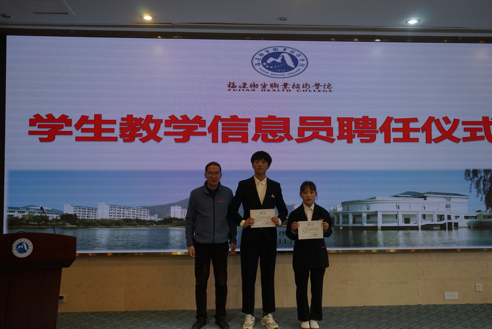 質(zhì)量管理辦公室副主任王珊珊、李燕平為學(xué)生教學(xué)信息站站長頒發(fā)聘書