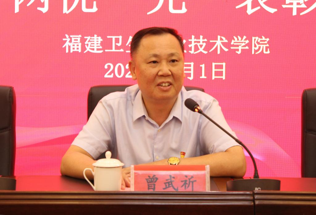 7月1日,在中國共產(chǎn)黨成立102周年之際,福建衛(wèi)生職業(yè)技術(shù)學(xué)院2023年暑期干部主題教育專題培訓(xùn)班開班式暨“兩優(yōu)一先”表彰大會在寧德市壽寧縣下黨鄉(xiāng)舉行。校黨委書記曾武祈、校長許能鋒、黨委副書記李美華、紀(jì)委書記游鋒、副校長黃銘珊出席大會,全校中層以上干部、各級黨務(wù)干部共88人參加,大會由李美華主持。