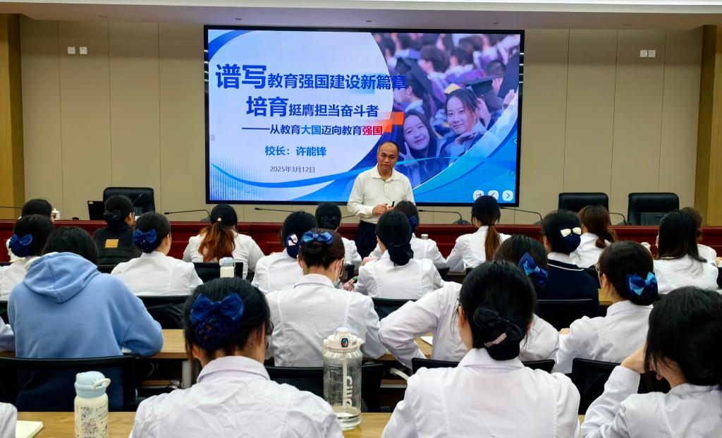 許能鋒指出,教育是國之大計(jì)、黨之大計(jì)。當(dāng)前,我國正從教育大國向教育強(qiáng)國邁進(jìn),《教育強(qiáng)國建設(shè)規(guī)劃綱要(2024-2035年)》為教育事業(yè)的發(fā)展擘畫了宏偉藍(lán)圖。我校作為培養(yǎng)高素質(zhì)醫(yī)藥衛(wèi)生人才的搖籃,將深入貫徹習(xí)近平總書記關(guān)于教育的重要論述,深化產(chǎn)教融合、科教融匯,著力培養(yǎng)適應(yīng)健康中國戰(zhàn)略需求的技術(shù)技能人才,為服務(wù)區(qū)域經(jīng)濟(jì)社會(huì)發(fā)展輸送更多“大國工匠”,以教育之強(qiáng)夯實(shí)國家富強(qiáng)之基。
