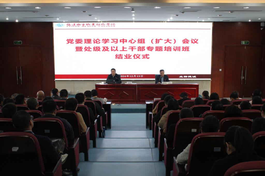 講座結束后,舉辦了學校處級及以上干部黨的二十屆三中全會專題培訓班結業(yè)儀式,曾武祈強調要以此次輔導為契機,運用好專題培訓的成果,在全面學習把握、貫徹落實上持續(xù)下功夫,堅定不移地把黨的二十屆三中全會精神落實到統(tǒng)一思想上、落實到具體行動上。一要始終堅持深學細悟、內化于心,永葆對黨的絕對忠誠。帶著感情、帶著使命、帶著信仰,把學習黨的二十屆三中全會精神、全國教育大會精神,與學習習近平總書記來閩的重要講話精神緊密結合起來,一體聯(lián)動學、深入思考學、聯(lián)系實際學。二要始終堅持全員學習、全域覆蓋,切實凝聚強大精神力量。學習宣傳貫徹黨的二十屆三中全會精神,是一個常學常新、不斷深化的過程。我們要持續(xù)加大力度、拓展深度、延伸廣度,不斷增強學習宣傳的理論深度、實踐力度、情感溫度。三要始終堅持篤信篤行、實干苦干,強化擔當作為推動發(fā)展。學習宣傳貫徹黨的二十屆三中全會精神,最關鍵的是不折不扣抓貫徹、全力以赴抓落實。各二級黨組織、各職能部門要把學習貫徹黨的二十屆三中全會精神與謀劃推動學校高質量發(fā)展、抓好當前工作緊密結合起來,按照2024年年終工作和2025年開局工作的要求,找準工作的切入點、結合點、著力點抓好貫徹落實。