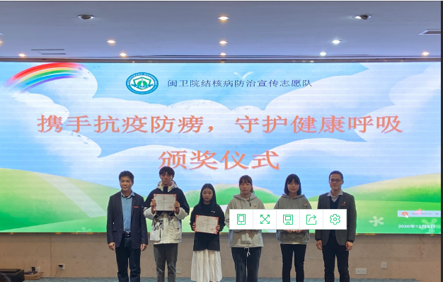 防治結(jié)核,我們齊行動。此次頒獎儀式,不僅以現(xiàn)場觀看視頻的方式展示近一個學期以來“攜手抗疫防癆,守護健康呼吸”系列活動中形式多樣、創(chuàng)意豐富的優(yōu)秀作品,通過作品對結(jié)核病防治知識進行了展示,還開啟了抖音app等直播渠道進行更加大眾化的結(jié)核知識普及,進一步引導學生主動學習結(jié)核病的防控知識,不斷提高自我防護能力,增強消除結(jié)核,共享健康社會的責任感和使命感。