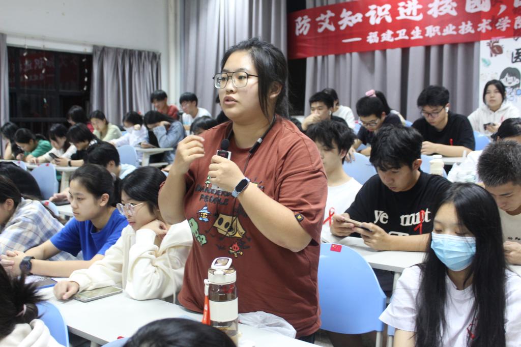 為了增強(qiáng)講座的互動性和實(shí)效性,潘主任特意設(shè)置了問答環(huán)節(jié)。這一環(huán)節(jié)激發(fā)了現(xiàn)場同學(xué)們的濃厚興趣,大家紛紛舉手提問,潘蘊(yùn)蛟就艾滋病的傳播途徑、檢測方法、疫苗研發(fā)等問題為同學(xué)們一一解答,消除了大家的疑慮和困惑,使大家對防艾知識有了更加深入的了解。