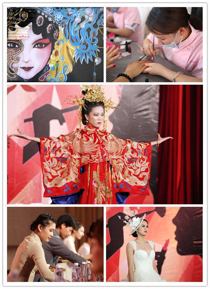 在畢業(yè)設(shè)計(jì)成果展晚會(huì)上,同學(xué)們將這三年的學(xué)習(xí)傾力展現(xiàn)于此,歐莎風(fēng)格、森系新娘、韓式白紗、中式新娘等各類型彩妝走秀引起現(xiàn)場(chǎng)的陣陣歡呼,模特們曼妙的身姿,精美的服飾和精致的妝容,在絢爛的燈光下,展現(xiàn)出一場(chǎng)空前的視覺(jué)盛宴。