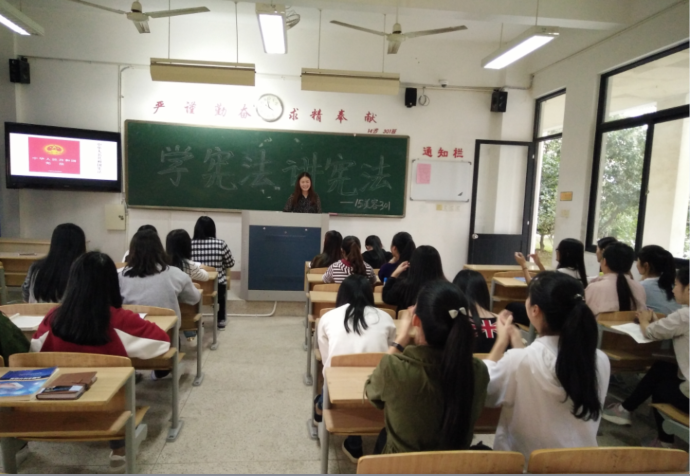 為貫徹落實(shí)習(xí)近平總書記系列重要講話精神,落實(shí)國家“七五普法規(guī)劃”和《青少年法治教育大綱》要求,全面推動我院廣泛深入地開展憲法教育,使我系全體學(xué)生深入了解憲法、尊崇憲法,弘揚(yáng)憲法精神,增強(qiáng)法治觀念,增強(qiáng)同學(xué)們的自我保護(hù)意識,管理系各班級于11月底組織開展“學(xué)憲法、講憲法”主題演講班會。
