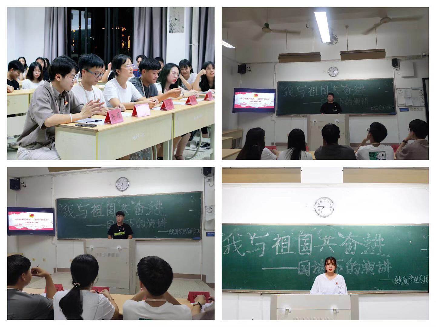 為積極響應(yīng)院團委“我與祖國共奮進”主題團日活動的號召,引導同學們進一步深入學習貫徹黨的十九大精神,加強同學們的愛國教育和提高學生的綜合素質(zhì)。9月18日晚8點,健康管理系團總支以“慶祝中華人民共和國成立70周年”為契機,于教學樓301開展以“我與祖國共奮進——國旗下的演講”為主題的慶祝中華人民共和國成立70周年演講比賽活動。