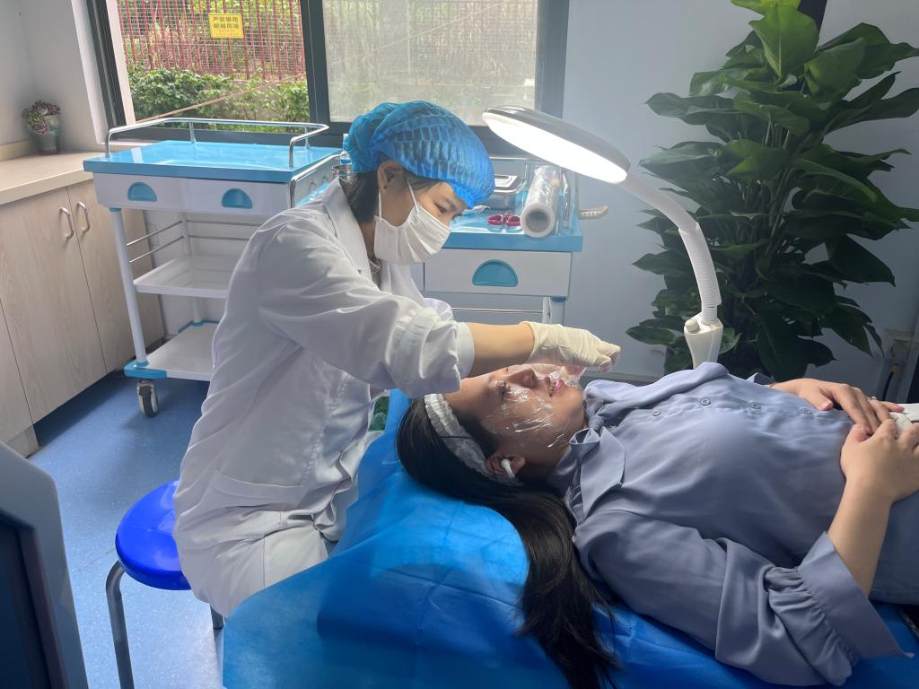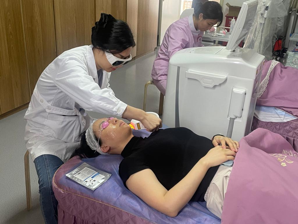 5月23日,在“5.25國(guó)際愛膚日”即將到來之際,本著為教職工服務(wù)的宗旨,我院醫(yī)學(xué)美容專業(yè)全體教師攜美容創(chuàng)新創(chuàng)業(yè)團(tuán)隊(duì)成員聯(lián)合校工會(huì)、婦委會(huì)共同舉辦了一場(chǎng)面向全校教師的公益活動(dòng)?;顒?dòng)項(xiàng)目有專業(yè)皮膚檢測(cè)(VISIA)、光子嫩膚、紅藍(lán)光照射、舒敏護(hù)膚體驗(yàn)和激光點(diǎn)疣等共5類,吸引了眾多老師前來體驗(yàn),收到一致好評(píng)。