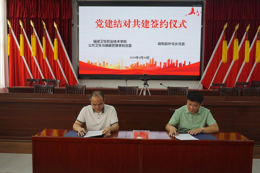6月30日,公共衛(wèi)生與健康管理學(xué)院黨委與政和縣外屯鄉(xiāng)黨委黨建結(jié)對(duì)共建儀式在外屯鄉(xiāng)舉行。外屯鄉(xiāng)黨委書(shū)記陸海、衛(wèi)生院院長(zhǎng)鄭勝偉、學(xué)院院長(zhǎng)莊海林、副書(shū)記董東等參與簽約儀式。