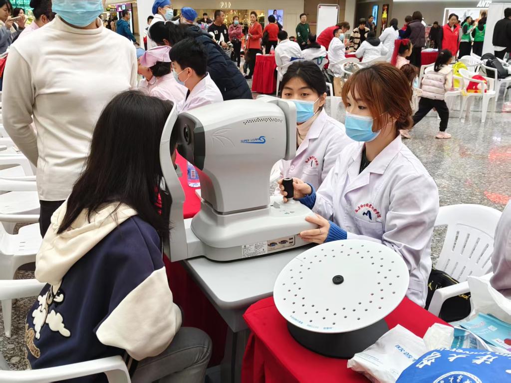舞臺(tái)下,游戲互動(dòng)區(qū)與健康服務(wù)區(qū)同樣精彩紛呈。志愿者巧妙地將結(jié)核防治知識(shí)融入 “直擊結(jié)核要害”(投壺游戲)、“結(jié)核知識(shí)對(duì)對(duì)碰” 等趣味游戲中,同時(shí)還設(shè)置了繪畫、中醫(yī)(植物)拓印、創(chuàng)意扭扭棒等特色活動(dòng),吸引了現(xiàn)場(chǎng)觀眾踴躍參與。這些別出心裁的游戲,有效地增強(qiáng)了群眾的健康意識(shí)。為切實(shí)滿足群眾的健康需求,支部特邀多家醫(yī)院及社區(qū)衛(wèi)生服務(wù)中心開展健康義診。支部師生充分發(fā)揮專業(yè)優(yōu)勢(shì),提供面部皮膚測(cè)試、眼健康檢查等多樣化健康咨詢服務(wù),同步進(jìn)行海姆立克急救法、心肺復(fù)蘇技能的演示教學(xué),以豐富多元的服務(wù)形式,提升民眾的健康管理意識(shí)與素養(yǎng)。