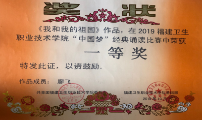 根據(jù)《教育部等八部門關(guān)于開展第22屆全國推廣普通話宣傳周活動的通知》(教語用函〔2019〕3號)的精神,為了增強全校師生的語言規(guī)范意識和推廣普通話的參與意識,營造良好的語言環(huán)境,推進我校語言文字工作,2019年9月16日-22日我校開展了題為“普通話誦七十周年華誕,規(guī)范字書愛國情懷”的宣傳周活動。在“中國夢”經(jīng)典誦讀比賽中我系18美容302班廖飛同學榮獲一等獎、19級預(yù)防302班張小龍榮獲優(yōu)秀獎。