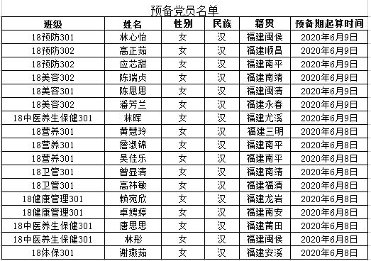 經(jīng)黨支部表決、黨總支審批、中共福建衛(wèi)生職業(yè)技術(shù)學(xué)院委員會批準,同意教師黨員莊海林同志按期轉(zhuǎn)正;同意接收林心怡等17位同志為中共預(yù)備黨員,預(yù)備期一年,預(yù)備期從支部大會通過之日算起。