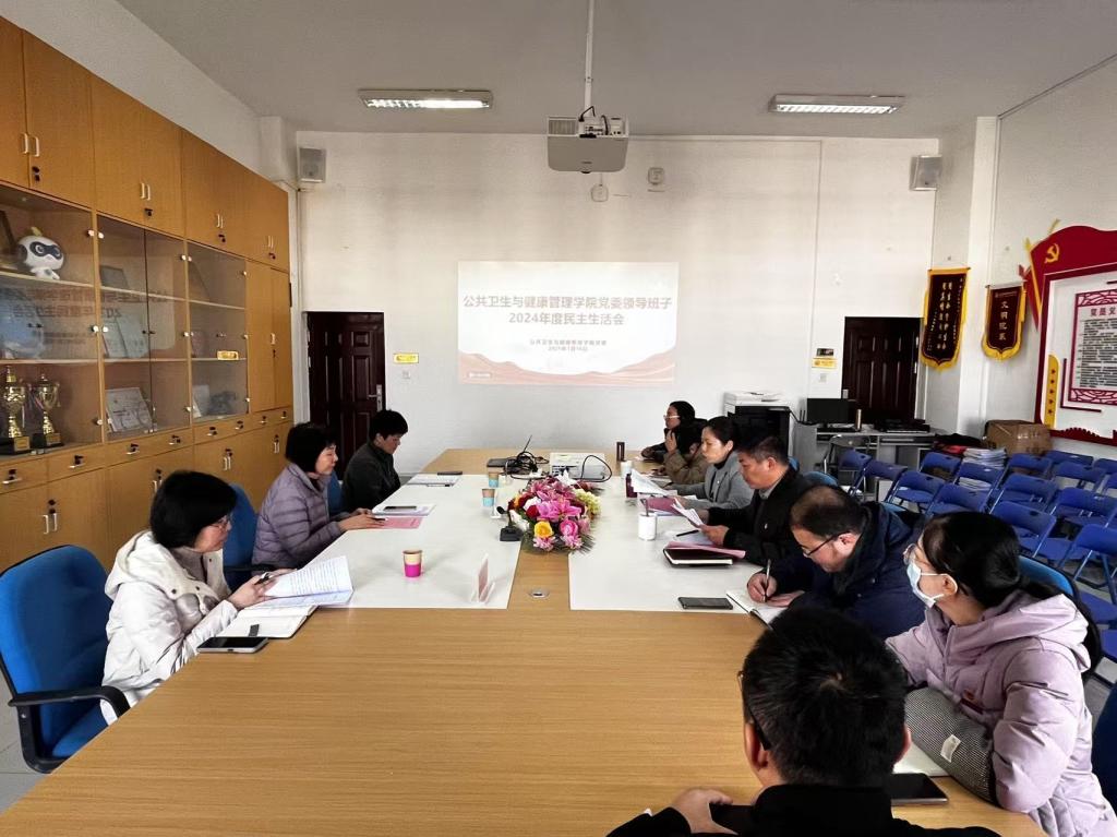 1月16日下午,公共衛(wèi)生與健康管理學院黨委領(lǐng)導班子2024年度民主生活會在學院會議室召開,校第三督導組到會指導,學院黨委領(lǐng)導班子全體成員參加會議,會議由學院黨委書記龔海蓉主持。