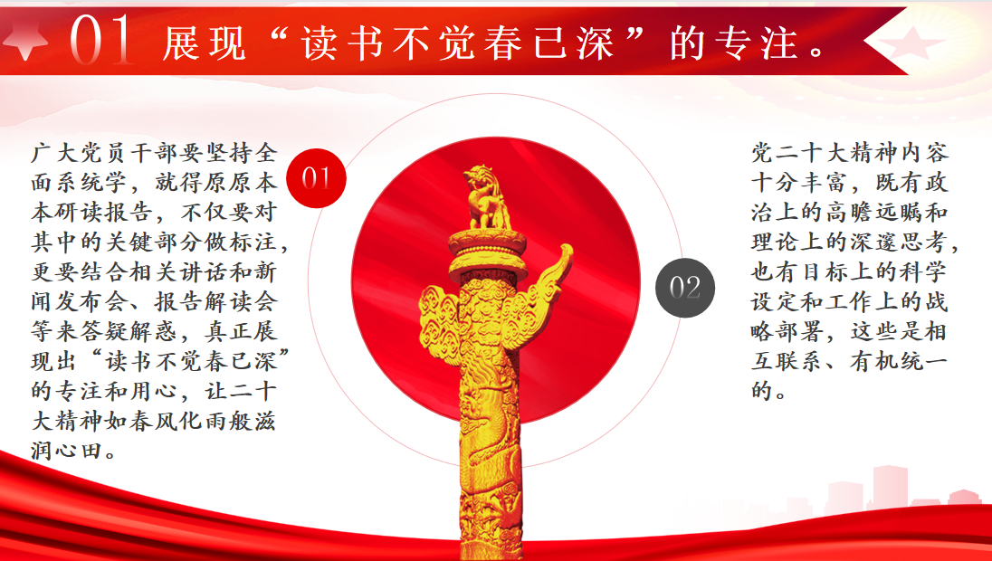 支部師生黨員們我們一定把學(xué)習(xí)好貫徹好落實(shí)好黨的二十大精神作為最重大的政治任務(wù),增強(qiáng)四個(gè)意識(shí)、堅(jiān)定四個(gè)自信、做到兩個(gè)維護(hù),以昂揚(yáng)的精神狀態(tài)、務(wù)實(shí)的工作作風(fēng)全面貫徹落實(shí)黨的二十大精神,踔厲奮發(fā)、勇毅前行、團(tuán)結(jié)奮斗!
