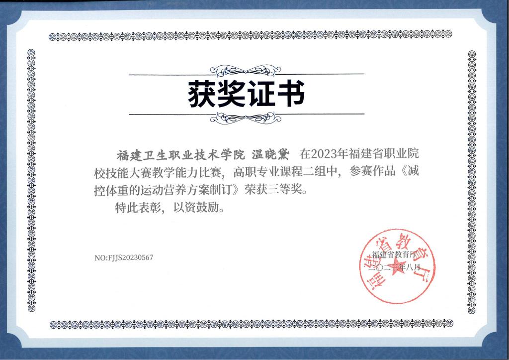 學(xué)院以現(xiàn)代大健康產(chǎn)業(yè)為核心,構(gòu)建了專業(yè)群體系,并深入挖掘各專業(yè)的內(nèi)在價(jià)值,塑造了“尚美行健、塑德啟智”的文化特色。學(xué)院創(chuàng)新性提出“三色光”建設(shè)工程,以黨建創(chuàng)新和隊(duì)伍建設(shè)為著力點(diǎn),深化“紅色”精神引領(lǐng)鑄魂工程;以專業(yè)提升和成果培育為發(fā)力點(diǎn),推進(jìn)“綠色”守正創(chuàng)新融合工程;以人才培養(yǎng)和事業(yè)發(fā)展為落腳點(diǎn),打造“藍(lán)色”整合優(yōu)化發(fā)展工程。近年來(lái),學(xué)生榮獲全國(guó)職業(yè)院校技能大賽高職組健身指導(dǎo)比賽團(tuán)體三等獎(jiǎng)、全國(guó)大學(xué)生計(jì)算機(jī)應(yīng)用能力與信息素養(yǎng)大賽一等獎(jiǎng)、“挑戰(zhàn)杯”福建省創(chuàng)業(yè)計(jì)劃競(jìng)賽銀獎(jiǎng)、全國(guó)美容產(chǎn)教融合職業(yè)技能大賽二等獎(jiǎng)、海峽兩岸暨港澳大學(xué)生職業(yè)技能大賽社群健康助理員三等獎(jiǎng)、福建省職業(yè)院校技能大賽高職組健康與社會(huì)照護(hù)二等獎(jiǎng),“筑夢(mèng)健康”實(shí)踐隊(duì)入選鄉(xiāng)村振興“篤行計(jì)劃”專項(xiàng)行動(dòng)全國(guó)示范性團(tuán)隊(duì)等。