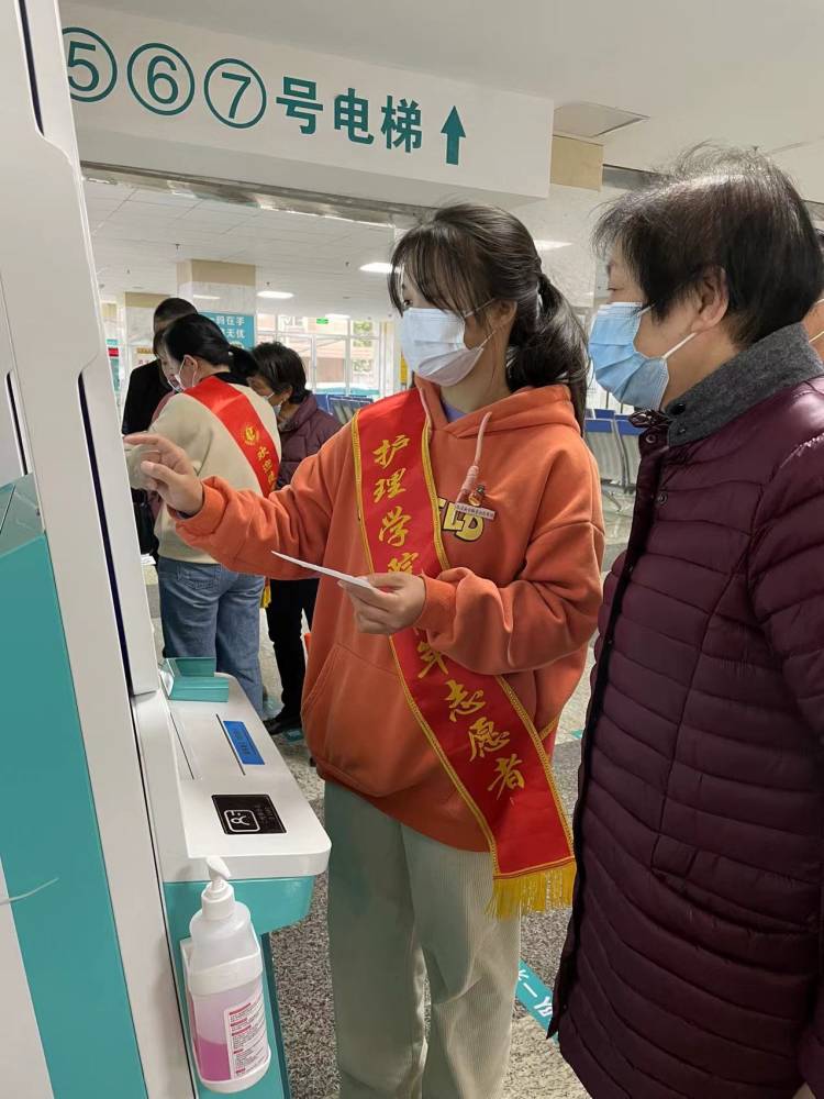 愛心導診,便民利民。護理學院先后組織學子在3月15日、3月16日在福建醫(yī)科大學附屬第一醫(yī)院和福州中醫(yī)院進行導診志愿服務(wù)活動?;顒又校驹刚邆冊卺t(yī)院工作人員的指導下快速投入到志愿者崗位,分組在醫(yī)院門診大廳、醫(yī)技樓等區(qū)域為患者和家屬提供導醫(yī)導診、文明勸導、咨詢答疑、協(xié)助自助機使用、維護就診秩序等志愿服務(wù)。“請問這項檢查要去哪里做?”“手機掛號繳費怎么弄?”“請幫我看一下,這張單子要交到哪?”……面對各種各樣的提問和求助,志愿者們始終熱情耐心地解答,切實幫助患者和家屬解決就診問題。