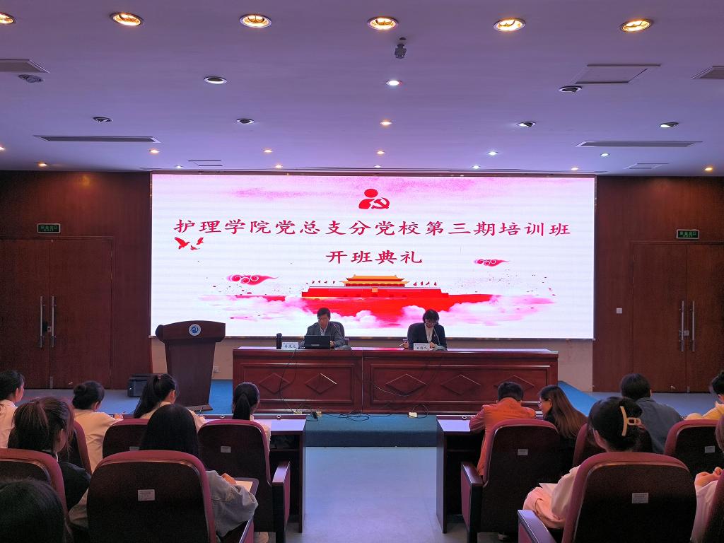 為學(xué)習(xí)宣傳貫徹習(xí)近平新時(shí)代中國(guó)特色社會(huì)主義思想和黨的二十大精神,深入落實(shí)新時(shí)代黨的建設(shè)的總要求和新時(shí)代黨的組織路線,切實(shí)做好入黨積極分子的培養(yǎng)教育工作,充實(shí)黨員隊(duì)伍后備力量,提升黨員發(fā)展質(zhì)量,嚴(yán)把發(fā)展黨員“入口關(guān)”,4月6日晚,護(hù)理學(xué)院黨總支分黨校第三期培訓(xùn)班開班典禮暨黨課第一講在實(shí)訓(xùn)樓報(bào)告廳順利舉行。護(hù)理學(xué)院黨總支副書記林來(lái)元、學(xué)生黨支部書記、輔導(dǎo)員及護(hù)理學(xué)院22級(jí)全體入黨積極分子出席開班典禮,開班典禮由黨總支專職組員許慧瓊主持。