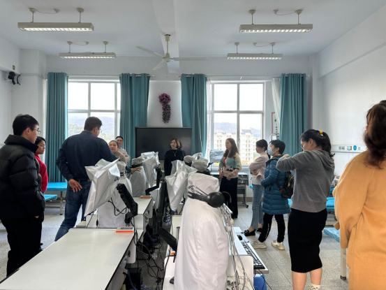 展課。林仁琴老師代表內(nèi)科護(hù)理教研室介紹了如何基于智慧職教平臺(tái)開(kāi)展線上-線下混合式教學(xué)。李冬秀老師與廈門(mén)市兒童醫(yī)院的張藝?yán)蠋焽@“如何創(chuàng)設(shè)高效實(shí)訓(xùn)課堂”分別進(jìn)行《內(nèi)科護(hù)理》和《急危重癥護(hù)理》的教學(xué)示范,并實(shí)地參觀了內(nèi)科護(hù)理實(shí)訓(xùn)室和急危重癥護(hù)理實(shí)訓(xùn)室,為后續(xù)課程開(kāi)展做準(zhǔn)備。