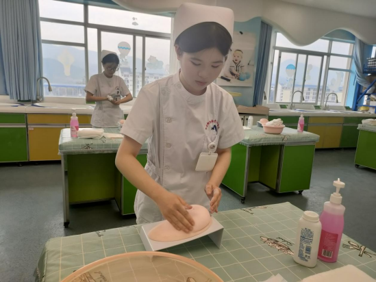 本次競(jìng)賽對(duì)象為22級(jí)助產(chǎn)專業(yè)全體學(xué)生,競(jìng)賽包括初賽、決賽兩個(gè)環(huán)節(jié)。初賽共選拔校內(nèi)班和校企合作班共24名同學(xué)進(jìn)入決賽,決賽項(xiàng)目為產(chǎn)婦堵奶手法操作。他們?cè)谶@里展示了扎實(shí)的專業(yè)技能和敏銳的臨床思維能力。