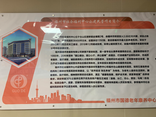 據(jù)悉,國德康養(yǎng)中心為福州市民政局為民辦實事的重點項目,也是目前福州市最大的養(yǎng)老中心,園區(qū)內(nèi)設(shè)置有一家五星級標準養(yǎng)老機構(gòu)及二級綜合醫(yī)院,充分的達到“醫(yī)養(yǎng)”結(jié)合,并以“讓家人放心,讓老人舒心”為服務(wù)目標,開園一年多,市場反響良好,目前千余張床位已接近飽和。通過本次企業(yè)參觀與學習,增進了學生們對老年保健與管理專業(yè)就業(yè)的認識和對未來的憧憬。