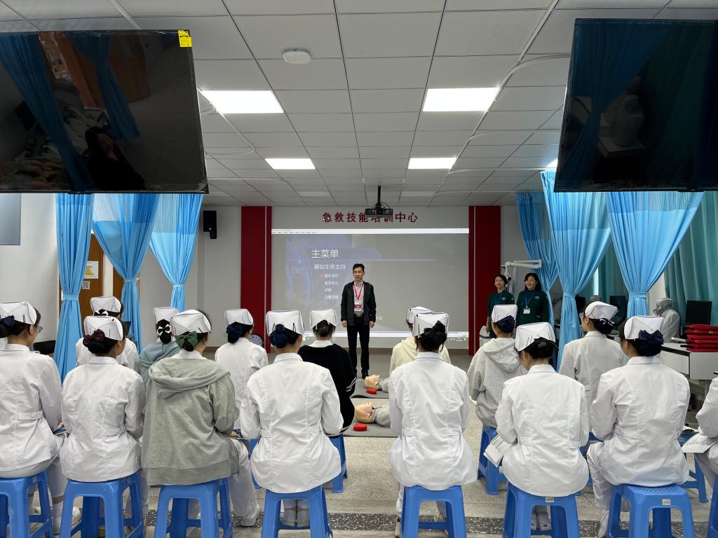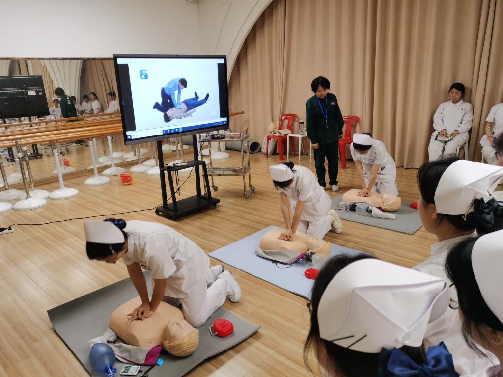 名師工作室引領(lǐng),打造急救教育新標(biāo)桿。教育部職業(yè)教育名師培養(yǎng)對象洪霞教授主持的名師工作室成為項(xiàng)目核心引擎。在AHA標(biāo)準(zhǔn)教材和標(biāo)準(zhǔn)化教學(xué)的基礎(chǔ)上,名師工作室整合教學(xué)名師、金牌工匠、AHA認(rèn)證導(dǎo)師,將AHA的BLS(基礎(chǔ)生命支持)課程轉(zhuǎn)化為動態(tài)教學(xué)場景。救護(hù)演練100%還原急救現(xiàn)場場景,每一步都有詳細(xì)解說,實(shí)現(xiàn)按壓深度、通氣頻率等操作參數(shù)的實(shí)時糾錯。培訓(xùn)過程中導(dǎo)師們孜孜不倦,傾囊相授;學(xué)員們專心致志,收獲頗豐。