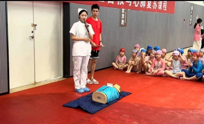 八月初,驕陽似火,福州市第十一中學(xué)的游泳館內(nèi)卻涌動著一股別樣的熱情。護(hù)理學(xué)院團(tuán)總支學(xué)生副書記元欣怡同學(xué)帶著專業(yè)知識與使命擔(dān)當(dāng),為約 70 位學(xué)生開啟了一場關(guān)乎生命急救的心肺復(fù)蘇培訓(xùn)之旅。