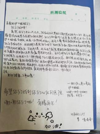 在感謝信中,患者們對陳瀅同學表達了深深的感激之情。“直到你們的出現(xiàn),同我聊天,讓我又找到了快樂!”“是你同那兩位護士姐姐給我?guī)砹饲榫w的穩(wěn)定劑——快樂!”陳瀅同學用她溫柔的話語緩解了患者的焦慮與恐懼,她不僅僅是一名優(yōu)秀的實習護士,更是一位心靈的守護者。