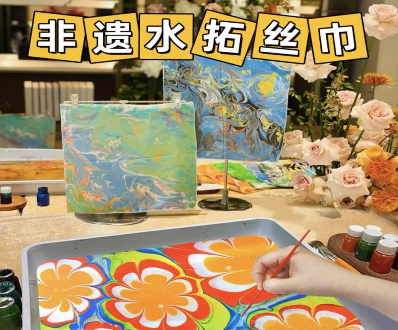 1、“水韻心愿,指尖藝術(shù)”水拓絲巾