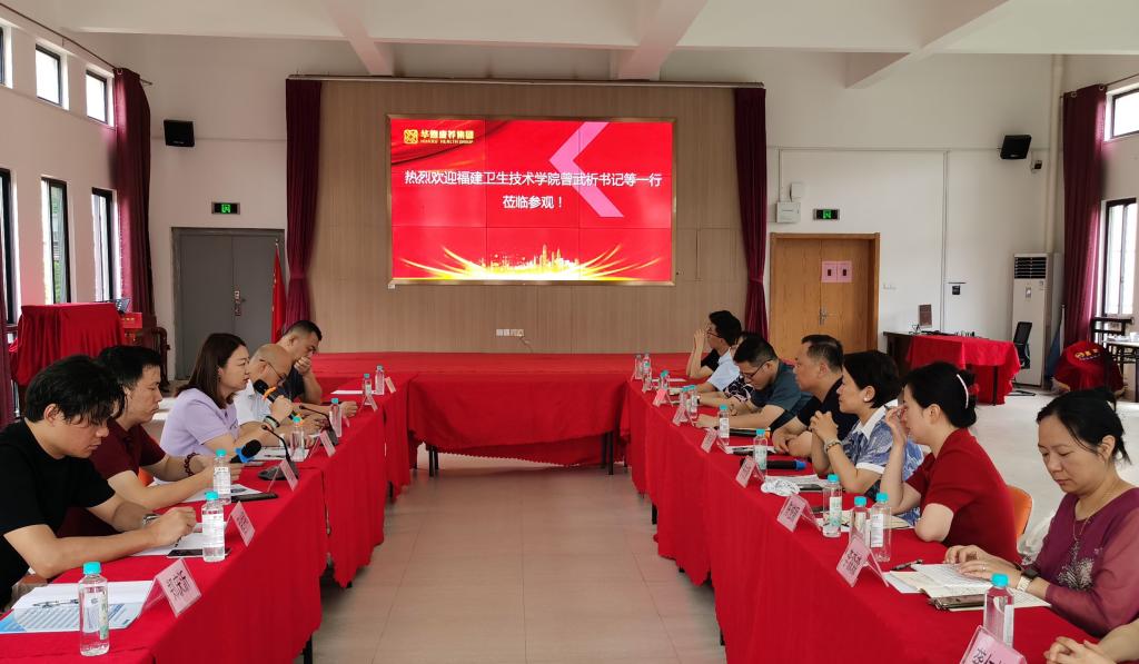 兩家企業(yè)負(fù)責(zé)人林瑩、吳秀雄在講話中,向校領(lǐng)導(dǎo)一行到訪表示熱烈的歡迎,并簡(jiǎn)要延伸介紹了福建華榮控股集團(tuán)和福建省國(guó)資康復(fù)醫(yī)療科技股份有限公司總體情況以及對(duì)外合作交流情況。