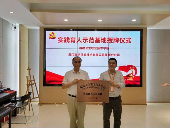 福建衛(wèi)生職業(yè)技術學院與廈門智宇信息科技有限公司共建實踐育人示范基地授牌儀式現(xiàn)場