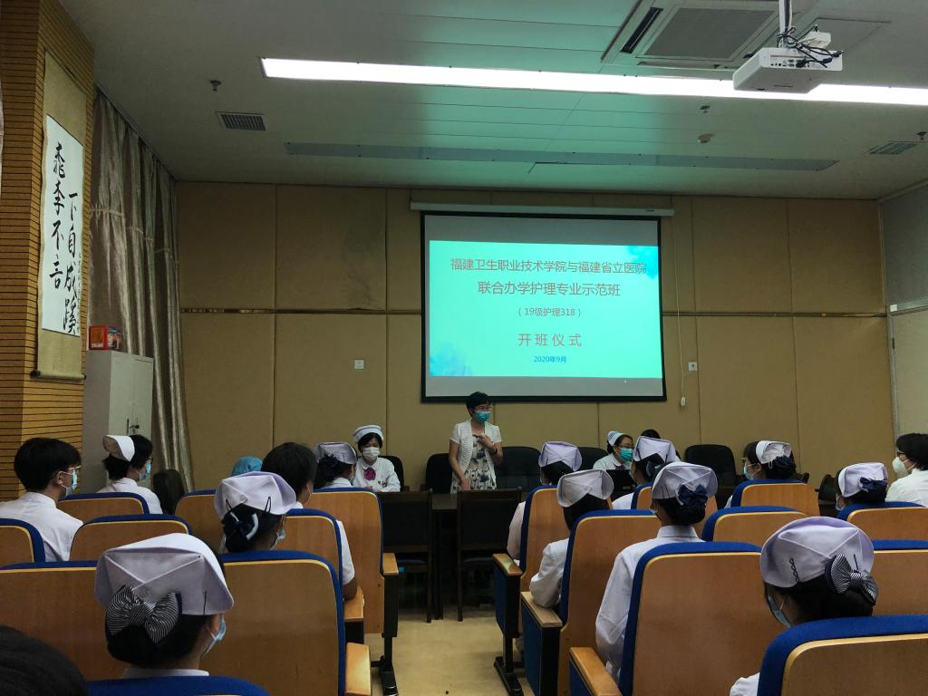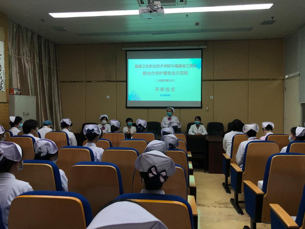 9月7日,我院與省立醫(yī)院聯合開辦的2019級護理系專業(yè)省立醫(yī)院校企合作班在省立醫(yī)院正式開班,省立醫(yī)院護理部副主任金爽老師、班主任穆艷老師、各教研室主任、帶老師代表以及我院護理系黨總支書記謝濤等參加了開班儀式。