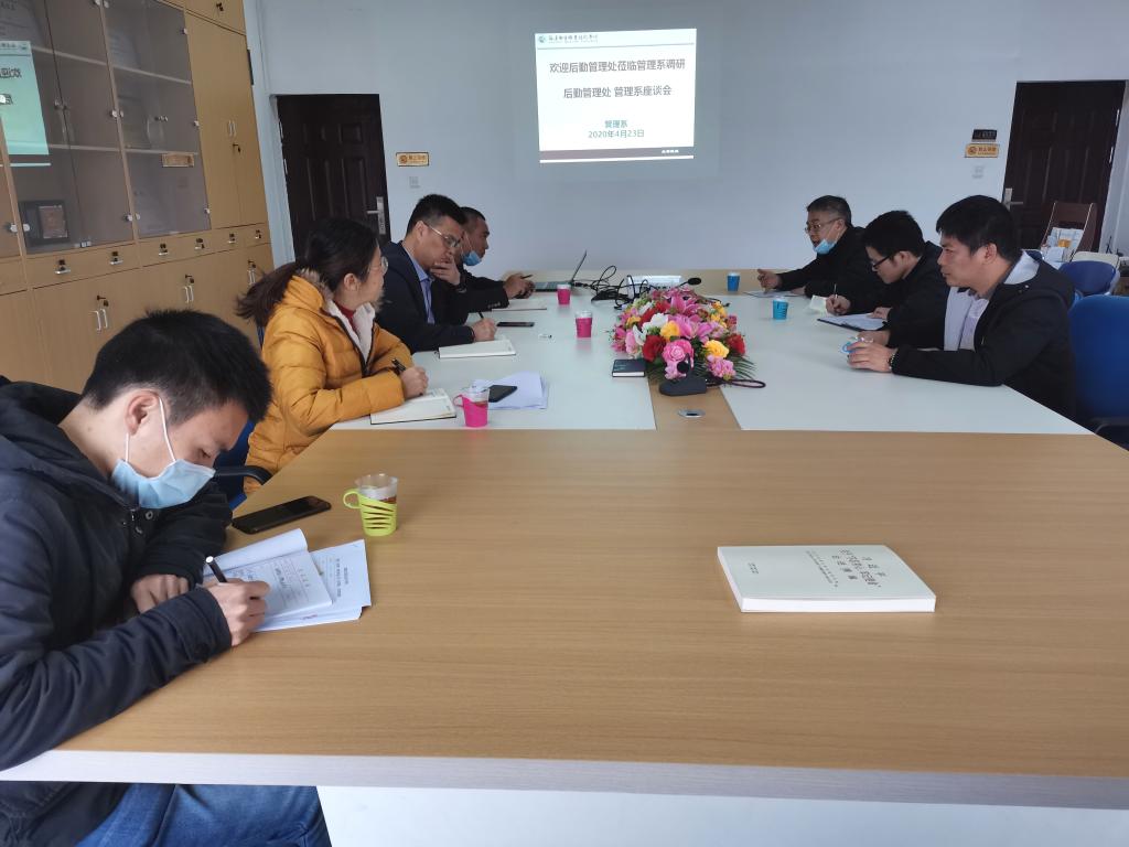 為進(jìn)一步深入了解系部工作需求,更好地為系部服務(wù),4月23日下午,后勤管理處艾松軍處長一行4人來到管理系開展工作調(diào)研。管理系黨政領(lǐng)導(dǎo)班子、實(shí)訓(xùn)室林文霖主任參加座談會。