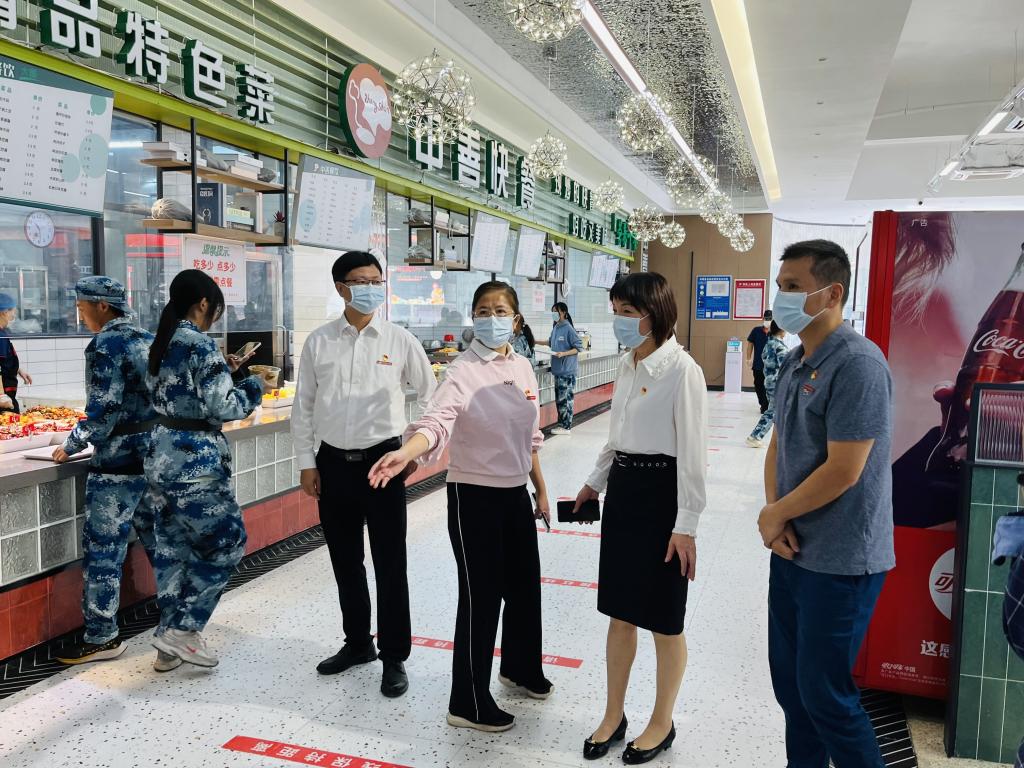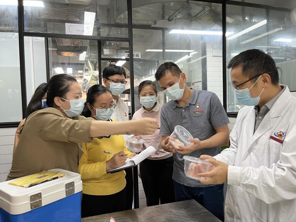 為加強(qiáng)學(xué)校食堂食品安全管理,筑牢師生糧食安全意識(shí),持續(xù)推進(jìn)“五聯(lián)七進(jìn)”工作,結(jié)合世界糧食日和全國糧食安全宣傳周活動(dòng)。2022年10月21日,院直機(jī)關(guān)黨總支后勤管理處、招標(biāo)采購中心黨支部與健康管理系“雙帶頭人”教師黨支部聯(lián)合開展食堂食品安全專項(xiàng)檢測,學(xué)校黨委副書記李美華現(xiàn)場指導(dǎo)工作。