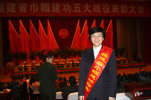 2011年2月28日上午,省婦聯(lián)召開福建省巾幗建功五大戰(zhàn)役表彰大會(huì),表彰100位福建省巾幗文明標(biāo)兵崗的崗位負(fù)責(zé)人和106名省巾幗建功標(biāo)兵。我院護(hù)理系謝濤副教授被評(píng)為“省巾幗建功標(biāo)兵”并參加表彰大會(huì)。(黨委工作部)