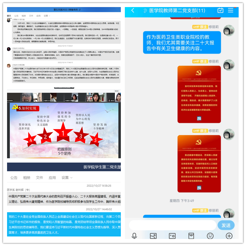 醫(yī)學(xué)院黨總支通過全院教職工大會、黨總支理論學(xué)習(xí)中心組(擴(kuò)大)會議、主題黨日、主題班會、團(tuán)日活動等形式,全面系統(tǒng)地將黨的二十大報(bào)告的思想精髓及核心要義,傳達(dá)到每一位師生員工。同時,還圍繞學(xué)習(xí)貫徹黨的二十大精神,展開主題研討和心得交流活動,以思想碰撞夯實(shí)理想信念之基,推進(jìn)學(xué)習(xí)走心、走實(shí)、走深。