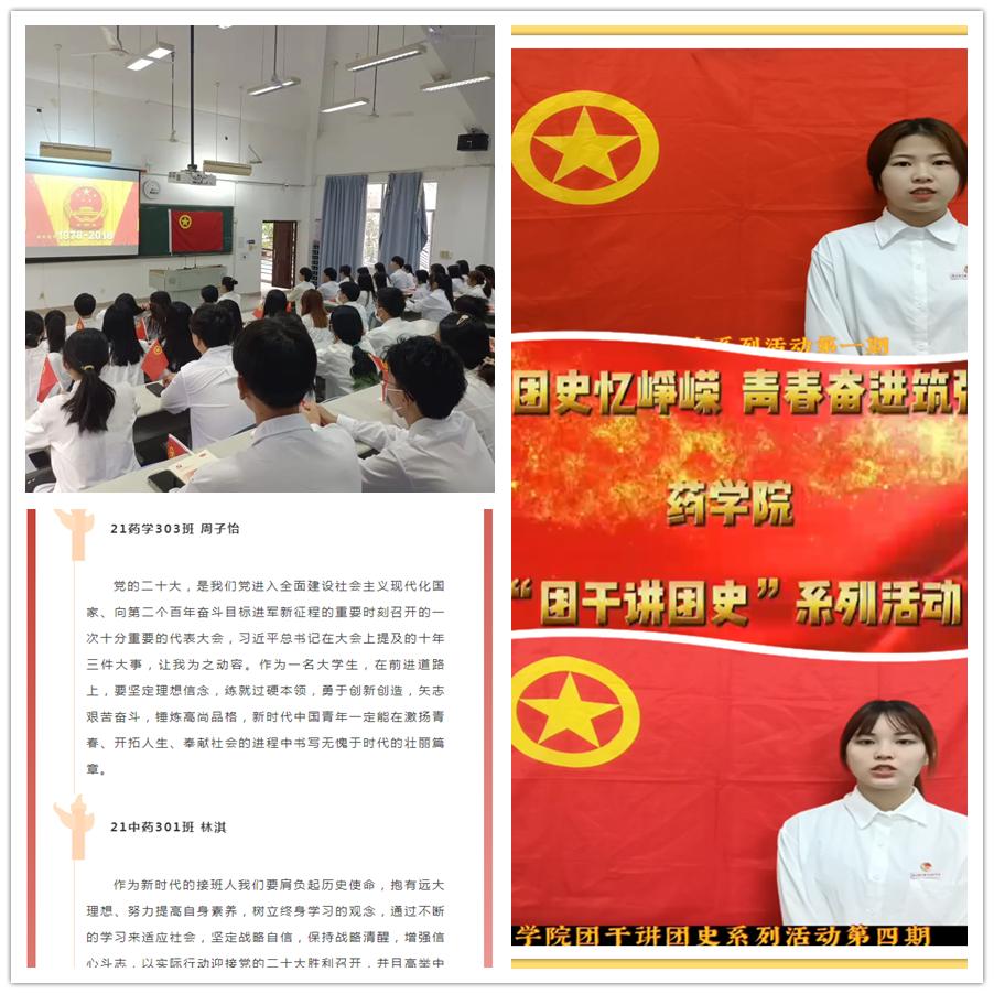 在藥學(xué)院黨總支的帶領(lǐng)下,團(tuán)總支組織學(xué)生積極投入黨的二十大精神學(xué)習(xí),開展團(tuán)學(xué)干部熱議黨的二十大勝利召開、團(tuán)學(xué)干部講團(tuán)史等活動,各班級團(tuán)支部開展學(xué)習(xí)貫徹黨的二十大精神專題學(xué)習(xí)、組織生活會、團(tuán)日活動。團(tuán)員學(xué)生朝氣蓬勃,展現(xiàn)了堅(jiān)定不移跟黨走的信念與新時代青年學(xué)生的風(fēng)采,綻放出青年的光和熱。