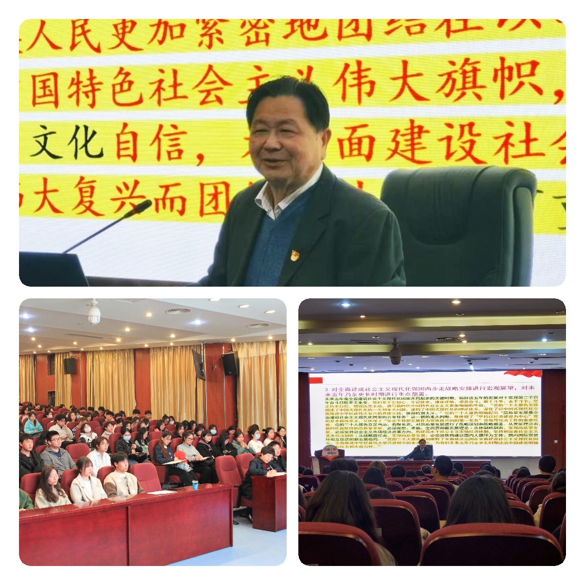 黃旺生教授對(duì)黨的二十大的召開(kāi)情況、重要意義、主要精神作了全面闡釋,并重點(diǎn)對(duì)如何學(xué)習(xí)宣傳貫徹落實(shí)黨的二十大精神,提出思考和針對(duì)性指導(dǎo)建議。他勉勵(lì)師生要從六個(gè)方面入手,自覺(jué)做黨的二十大精神的堅(jiān)定信仰者、有力傳播者、忠實(shí)踐行者:一是在深入學(xué)習(xí)、深刻領(lǐng)會(huì)上下功夫,用黨的二十大精神武裝頭腦、固根守魂;二是認(rèn)真研讀黨的二十大報(bào)告和新黨章,著重把握重點(diǎn)內(nèi)容;三是抓住重點(diǎn),做到五個(gè)“牢牢把握”;四是在強(qiáng)化本領(lǐng)、提高能力上下功夫;五是理論聯(lián)系實(shí)際,用黨的二十大精神指導(dǎo)實(shí)踐、改進(jìn)提升工作;六是激發(fā)廣大入黨積極分子學(xué)習(xí)的積極性、主動(dòng)性。