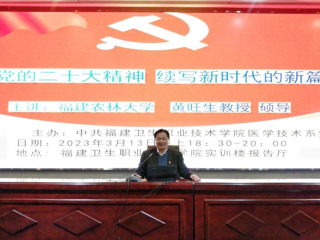 3月13日,福建農(nóng)林大學(xué)黃旺生教授來(lái)校為醫(yī)學(xué)技術(shù)系師生講授《學(xué)習(xí)黨的二十大精神 續(xù)寫新時(shí)代的新篇章》黨課。醫(yī)學(xué)技術(shù)系黨總支書記柯瓊鶯、黨員教師代表及醫(yī)學(xué)技術(shù)系第二十一期業(yè)余分黨校暨青馬工程培訓(xùn)班學(xué)員150余人共同參加學(xué)習(xí)。