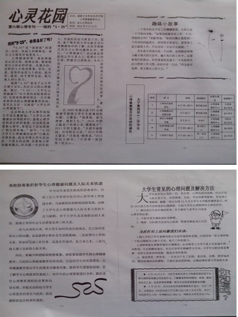 《心靈花園:第六期心理專(zhuān)刊——相約“5·25”》(2013年5月20日)