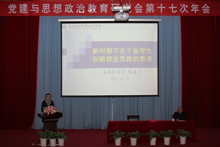 有8位老師進(jìn)行了年會論文交流。附屬醫(yī)院錢新春書記作了《學(xué)習(xí)“梅奧”文化,落實(shí)“三改兩推一評議”》論文交流;人事處張夢全老師作了《學(xué)院師德建設(shè)現(xiàn)狀調(diào)查報(bào)告》論文交流;學(xué)生工作處賴文金老師作了《福建衛(wèi)生職業(yè)技術(shù)學(xué)院貧困生現(xiàn)狀分析與對策》論文交流;保衛(wèi)處林一蘇老師作了《校園安全工作階段性防范的重要性——論新生入校初期安定穩(wěn)定工作與防范》論文交流;公共基礎(chǔ)部丁愛芝老師作了《大學(xué)生入黨積極分子宗教信仰現(xiàn)狀調(diào)查與分析》論文交流;醫(yī)學(xué)技術(shù)系柯瓊鶯老師作了《高職院校學(xué)生轉(zhuǎn)專業(yè)的動因、問題及對策探究》論文交流;臨床醫(yī)學(xué)系陳盛蘭老師作了《新時(shí)期下關(guān)于醫(yī)學(xué)生創(chuàng)新就業(yè)思路的思考》論文交流;黨委工作部張?zhí)烀骼蠋熥髁恕镀髽I(yè)文化進(jìn)校園校企合作育天使》論文交流。