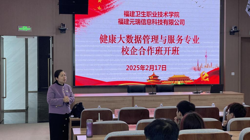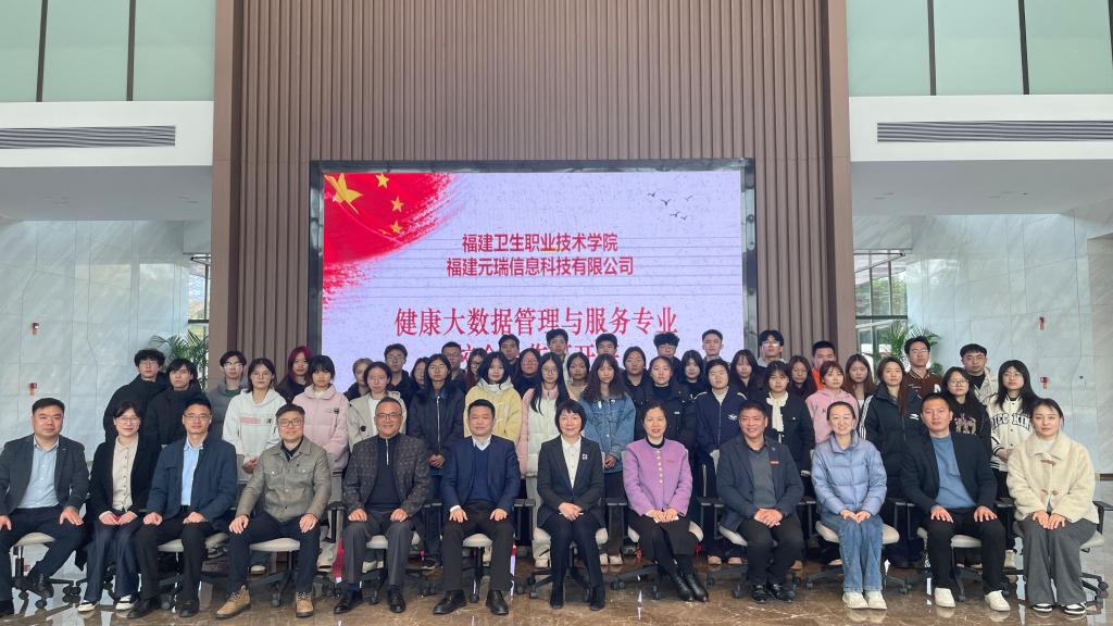 2月17日,我校第一屆健康大數(shù)據(jù)管理與服務(wù)專業(yè)“校企合作班”開(kāi)班儀式在國(guó)家東南健康醫(yī)療大數(shù)據(jù)中心隆重舉行。福建元瑞信息科技有限公司總經(jīng)理陳偉林、常務(wù)副總徐錦元、副總經(jīng)理李昱、各部門(mén)負(fù)責(zé)人,學(xué)校黨委副書(shū)記李美華,健康學(xué)院領(lǐng)導(dǎo)班子成員、健康大數(shù)據(jù)教研室專任教師、輔導(dǎo)員以及23級(jí)健康大數(shù)據(jù)管理與服務(wù)301班的學(xué)生共同參加開(kāi)班儀式。