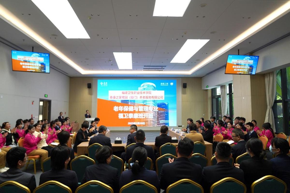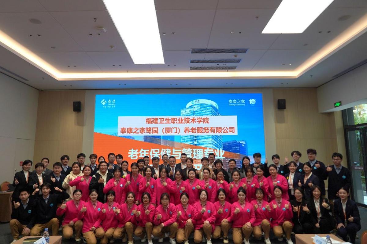 此次開班儀式的成功舉辦,標志著福建衛(wèi)生職業(yè)技術(shù)學院與泰康之家·鷺園在深化產(chǎn)教融合、推進校企合作方面邁出了堅實的一步。未來,雙方將圍繞人才培養(yǎng)、課程研發(fā)、實踐基地建設(shè)等方面開展更廣泛、更深入的合作。泰康之家作為國內(nèi)領(lǐng)先的高端醫(yī)養(yǎng)服務(wù)品牌,擁有國際化的康養(yǎng)視野、科學的管理、教育理念、優(yōu)秀的專業(yè)照護團隊及舒適的康養(yǎng)環(huán)境、先進的適老化設(shè)施設(shè)備,尤其是認知癥照護方面,積累了豐富的經(jīng)驗,為校企合作創(chuàng)造了良好的教學平臺及硬件軟件條件。而福建衛(wèi)生職業(yè)技術(shù)學院,作為一所具有137年深厚醫(yī)學教育底蘊的院校,在人才培養(yǎng)、專業(yè)建設(shè)、社會服務(wù)等方面成果顯著,相信校企雙方的合作,是強強聯(lián)合、優(yōu)勢互補,將為同學們搭建起貫通課堂與崗位、理論與實踐緊密連接的學習成長平臺,助力國家在認知癥照護領(lǐng)域培養(yǎng)更多優(yōu)秀的專業(yè)人才。
