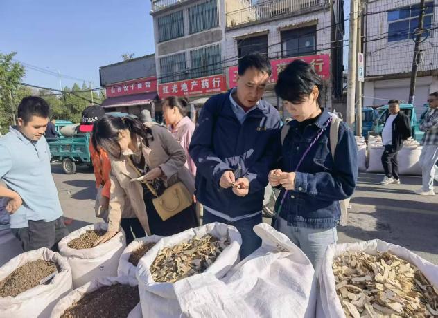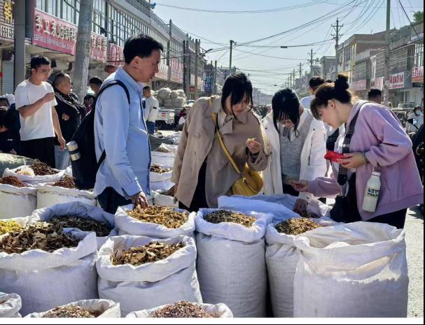 同時,團(tuán)隊前往全國最大的中藥材飲片交易市場。教師們仔細(xì)觀察不同藥材的形態(tài)、質(zhì)地,詢問商家關(guān)于藥材產(chǎn)地、功效及市場行情,了解中藥材流通過程及市場需求動態(tài)。為更全面了解市場,團(tuán)隊在企業(yè)帶領(lǐng)下奔赴十八里藥材早市,為教學(xué)與實踐相結(jié)合積累了鮮活素材。