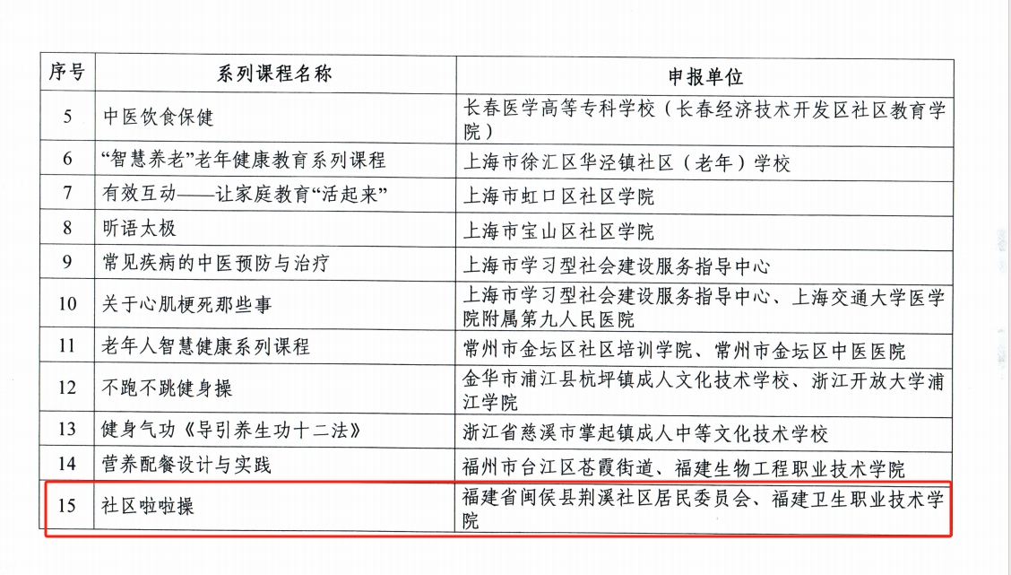 近日,教育部辦公廳公布2024年縣域社區(qū)學(xué)習(xí)中心典型案例和品牌課程推介名單。由我校體育部余照鋮老師主講,與閩侯縣荊溪社區(qū)居民委員會(huì)聯(lián)合申報(bào)的《社區(qū)啦啦操》課程,憑借創(chuàng)新的課程設(shè)計(jì)與顯著的社會(huì)效益脫穎而出,成功入選“2024年縣域社區(qū)學(xué)習(xí)中心品牌課程”。這不僅彰顯了我校在社區(qū)教育領(lǐng)域的積極探索與實(shí)踐成果,也展現(xiàn)了教師團(tuán)隊(duì)深耕基層教育的專(zhuān)業(yè)實(shí)力。
