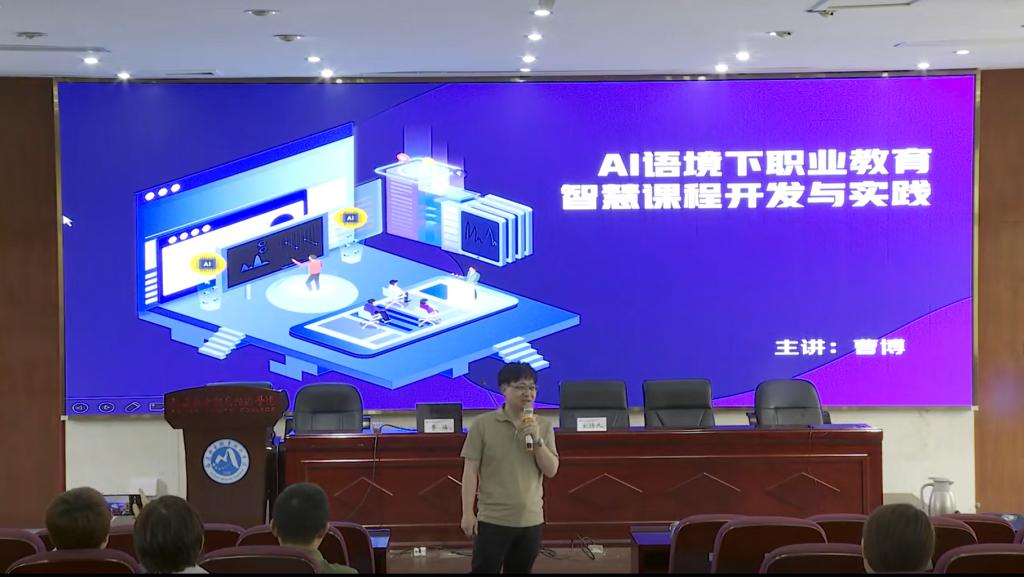 為順應(yīng)智慧教育的發(fā)展潮流,促進人工智能技術(shù)與職業(yè)教育的深度融合,近日,我校舉辦“AI語境下職業(yè)教育智慧課程開發(fā)與實踐”專題講座。本次講座特別邀請了泉州華光職業(yè)學(xué)院攝影與電影技術(shù)學(xué)院常務(wù)副院長曹博教授擔(dān)任主講人,吸引了全校一百余名教師參加,共同探討如何在當(dāng)前AI技術(shù)迅猛發(fā)展的背景下,創(chuàng)新職業(yè)教育模式,提升教學(xué)效果。
